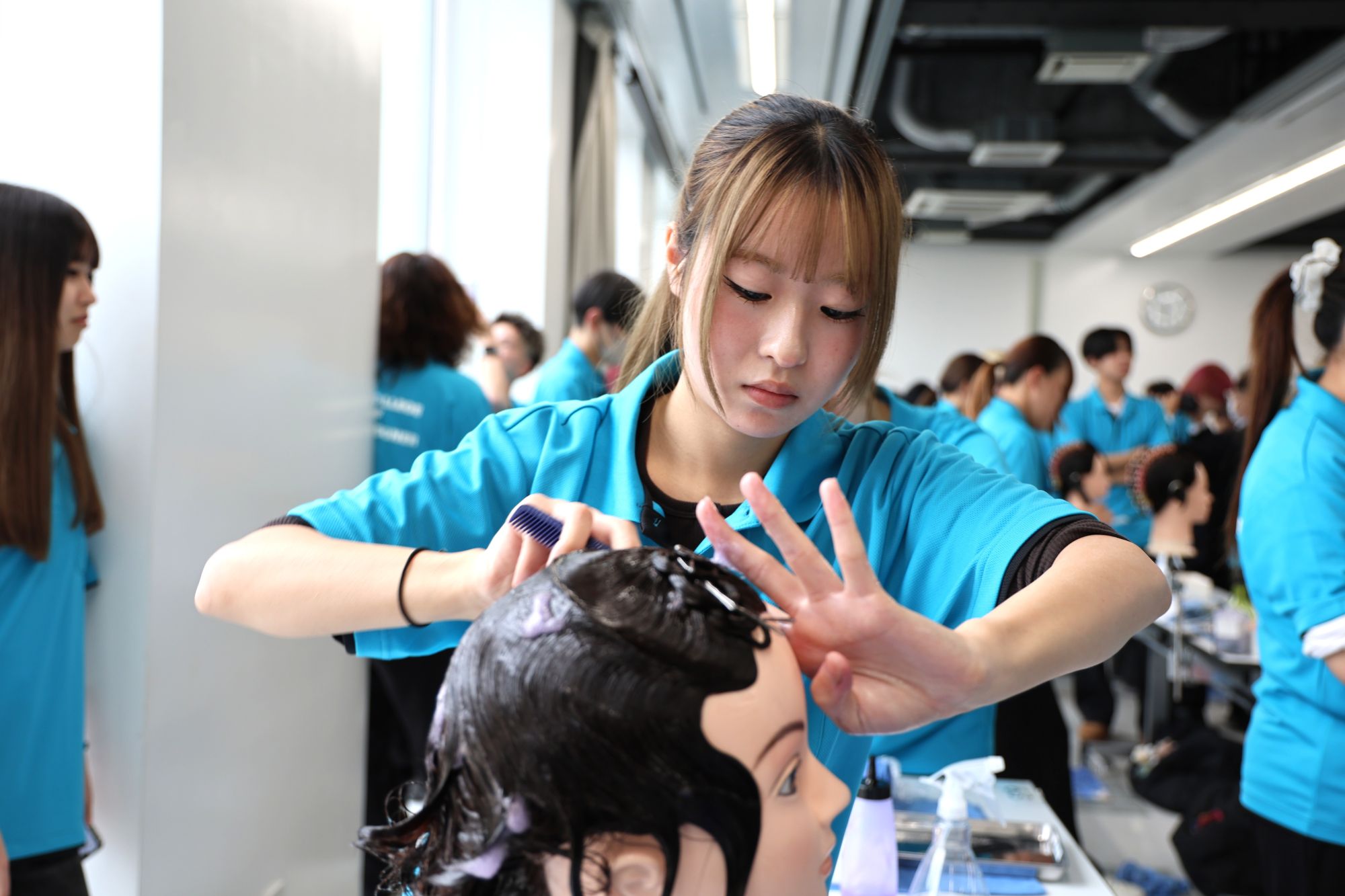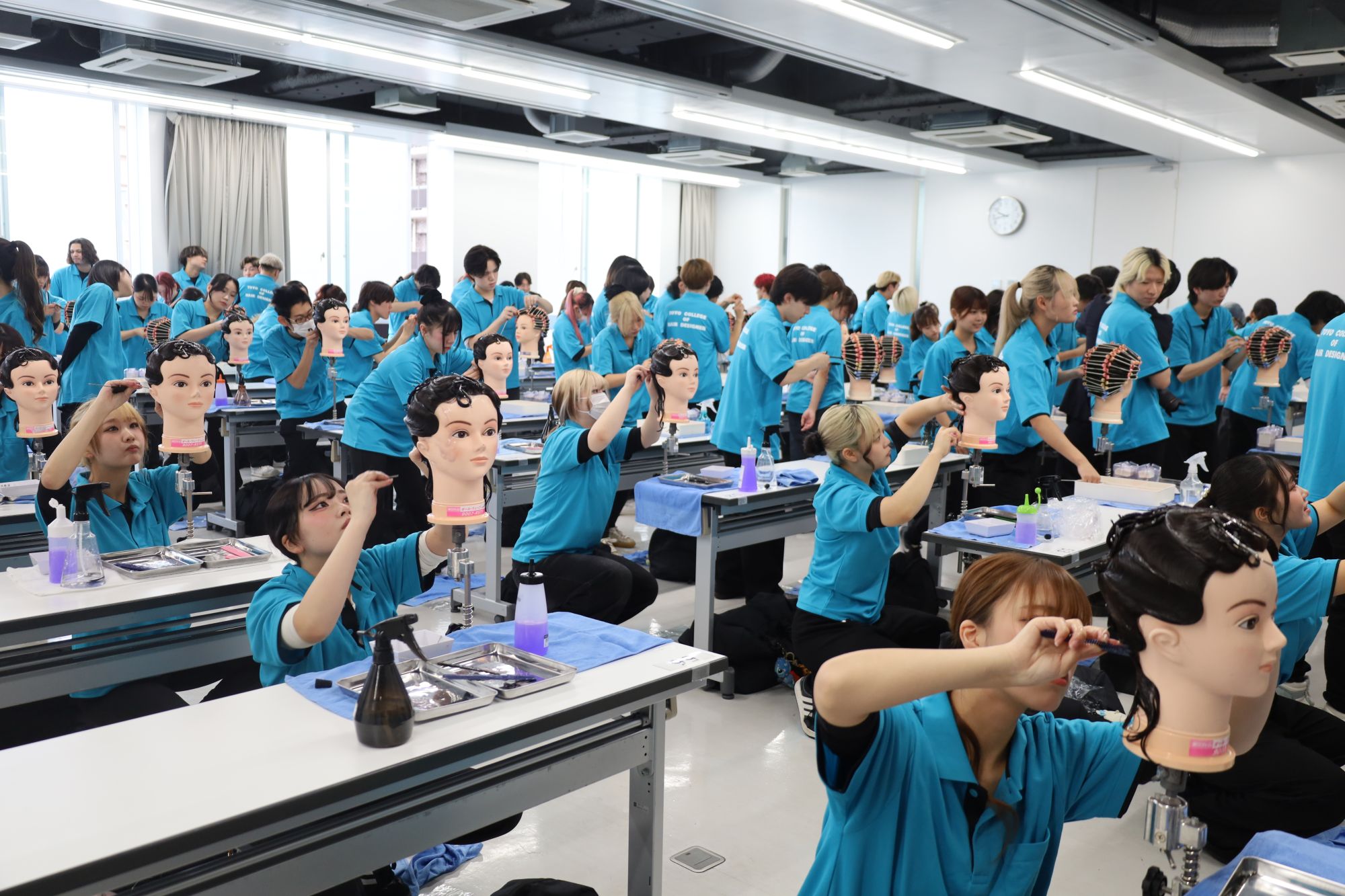 美容科・理容科の学生が出場し、6部門(カット・ミディアムカットドライヤーセット・ワインディング・オールウェーブ・アップスタイル・ネイルアート)で日頃の練習の成果を競いました。