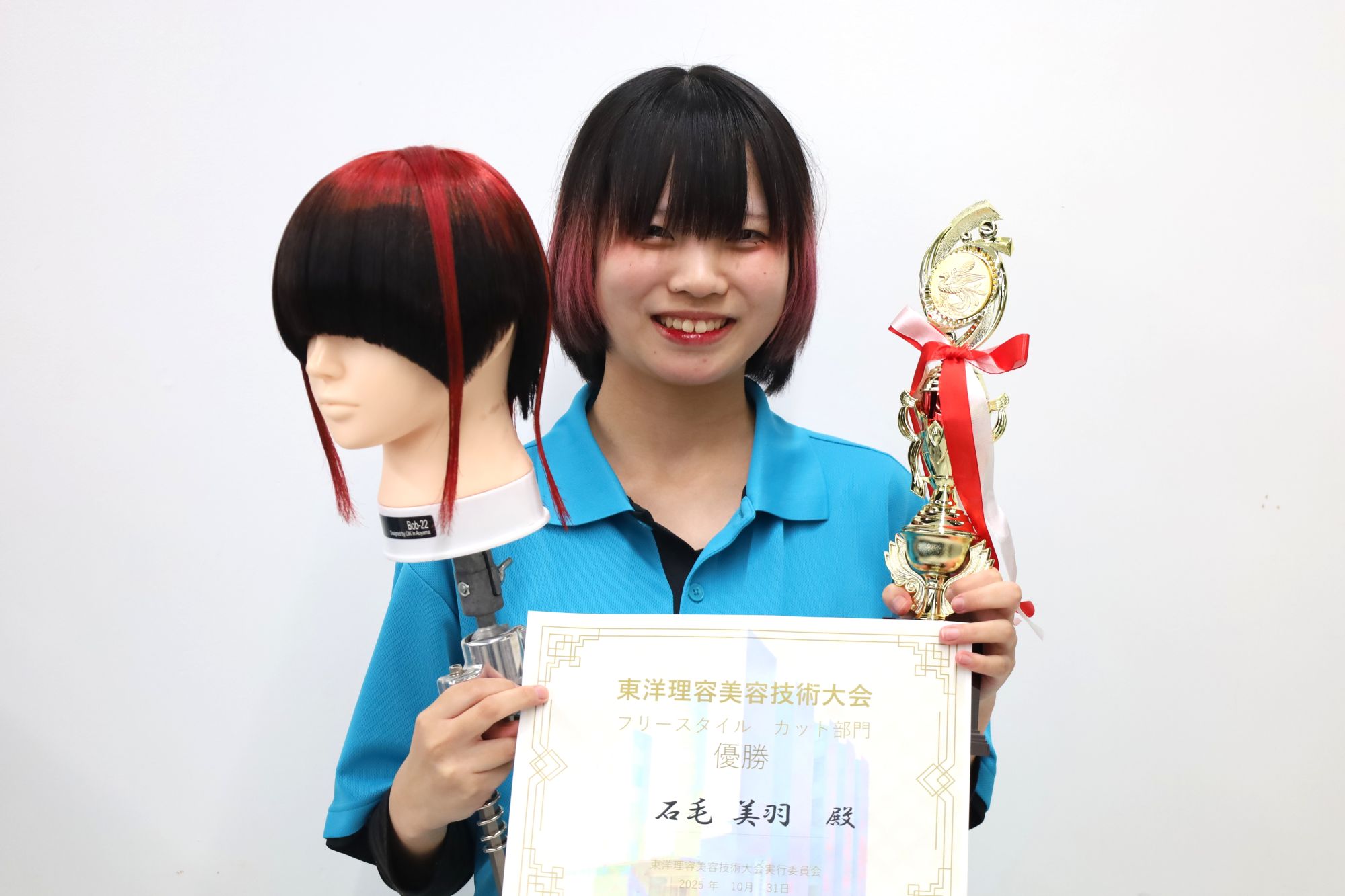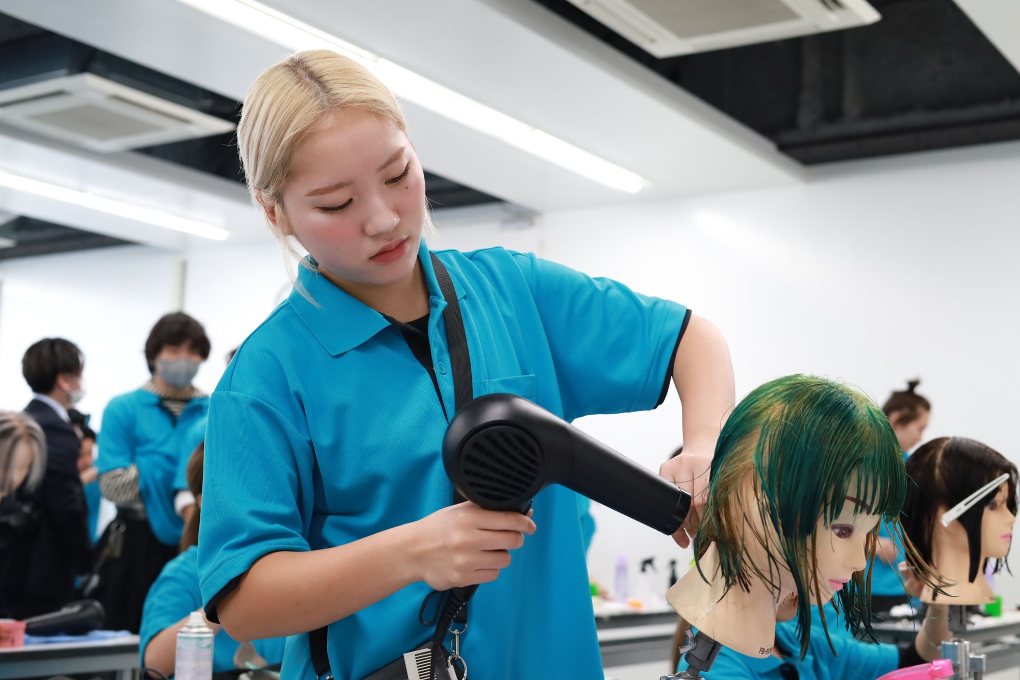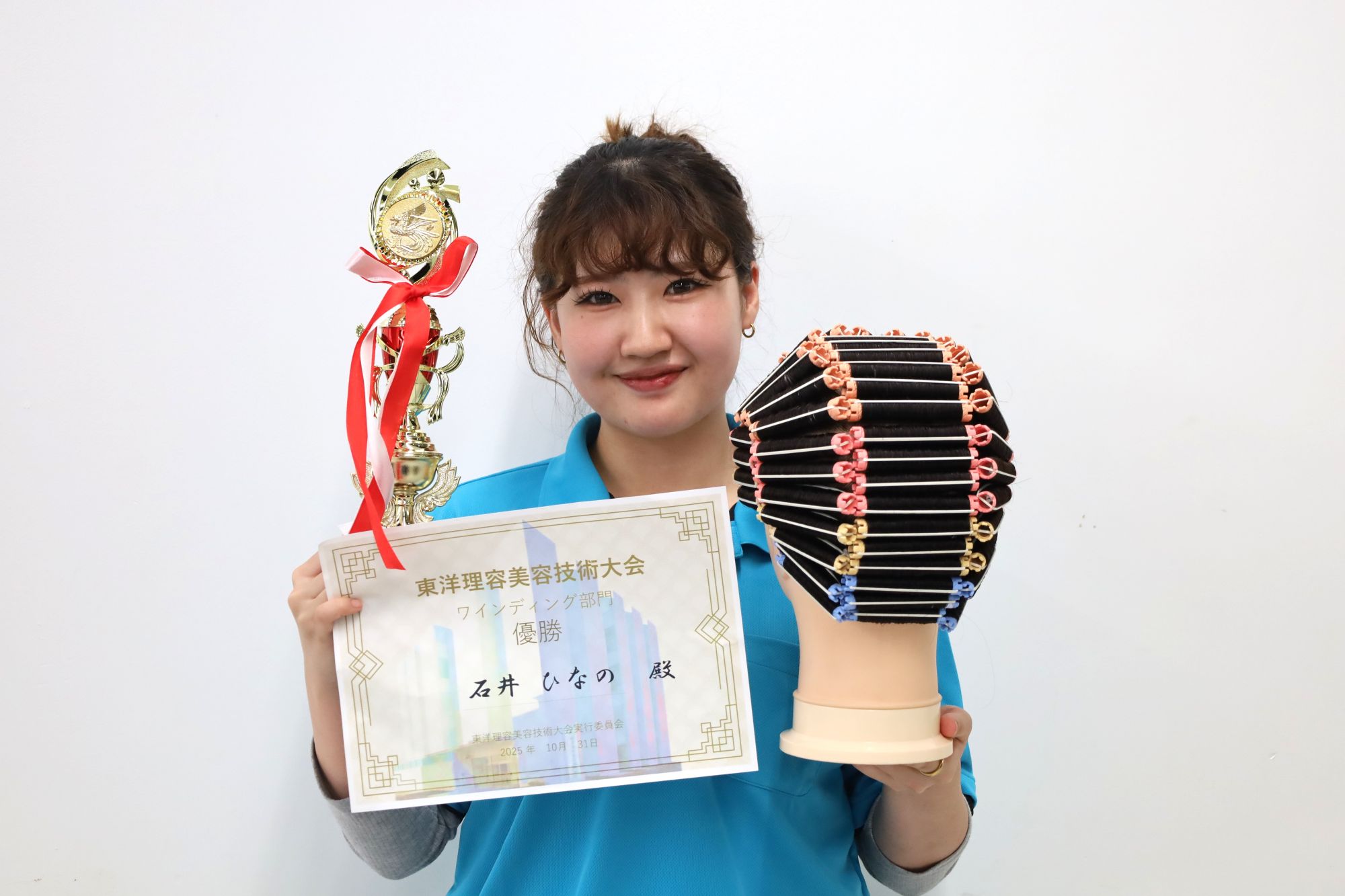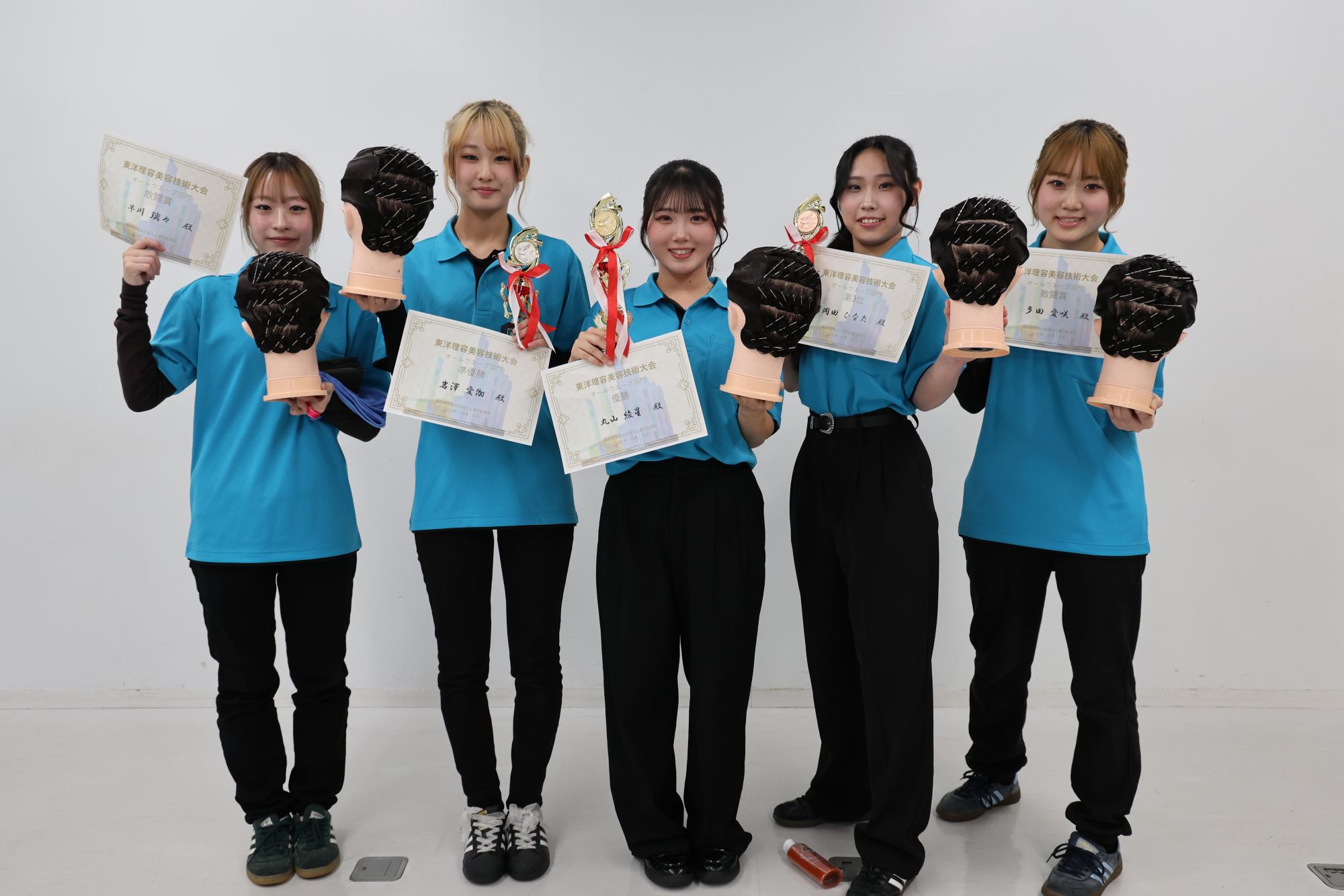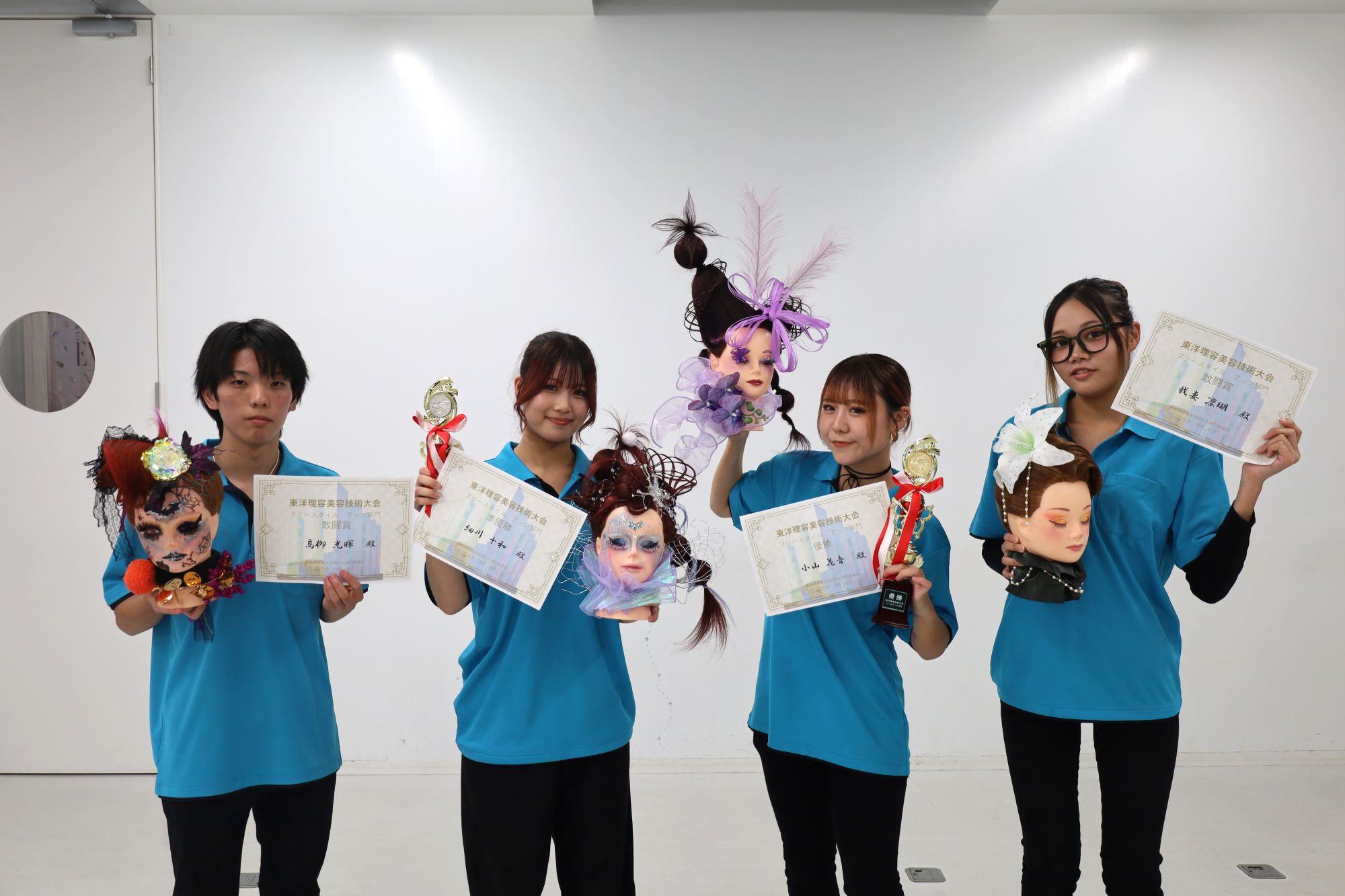 美容科・理容科の学生が出場し、6部門(カット・ミディアムカットドライヤーセット・ワインディング・オールウェーブ・アップスタイル・ネイルアート)で日頃の練習の成果を競いました。
