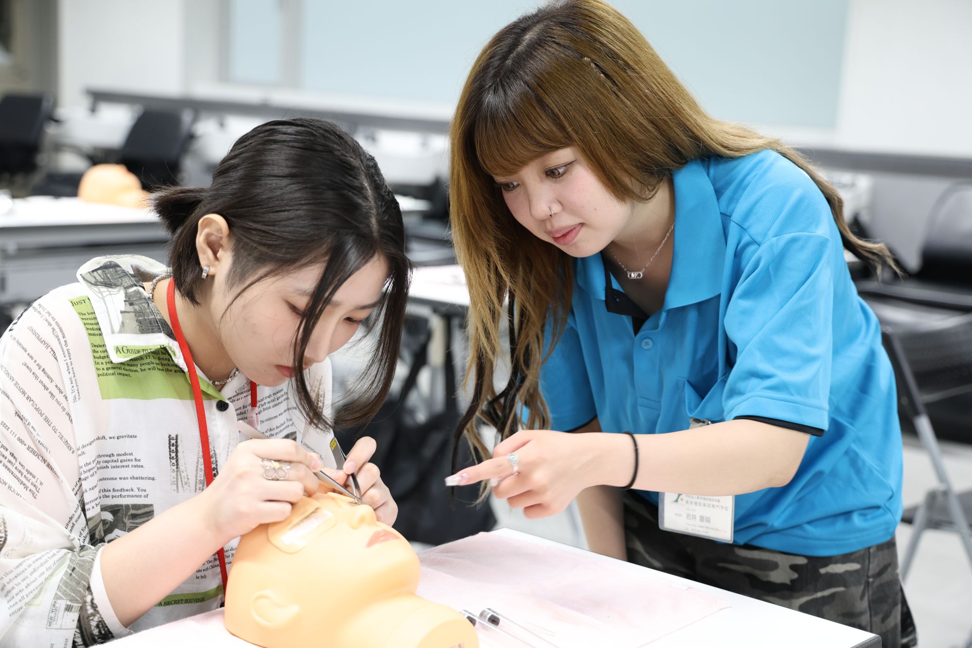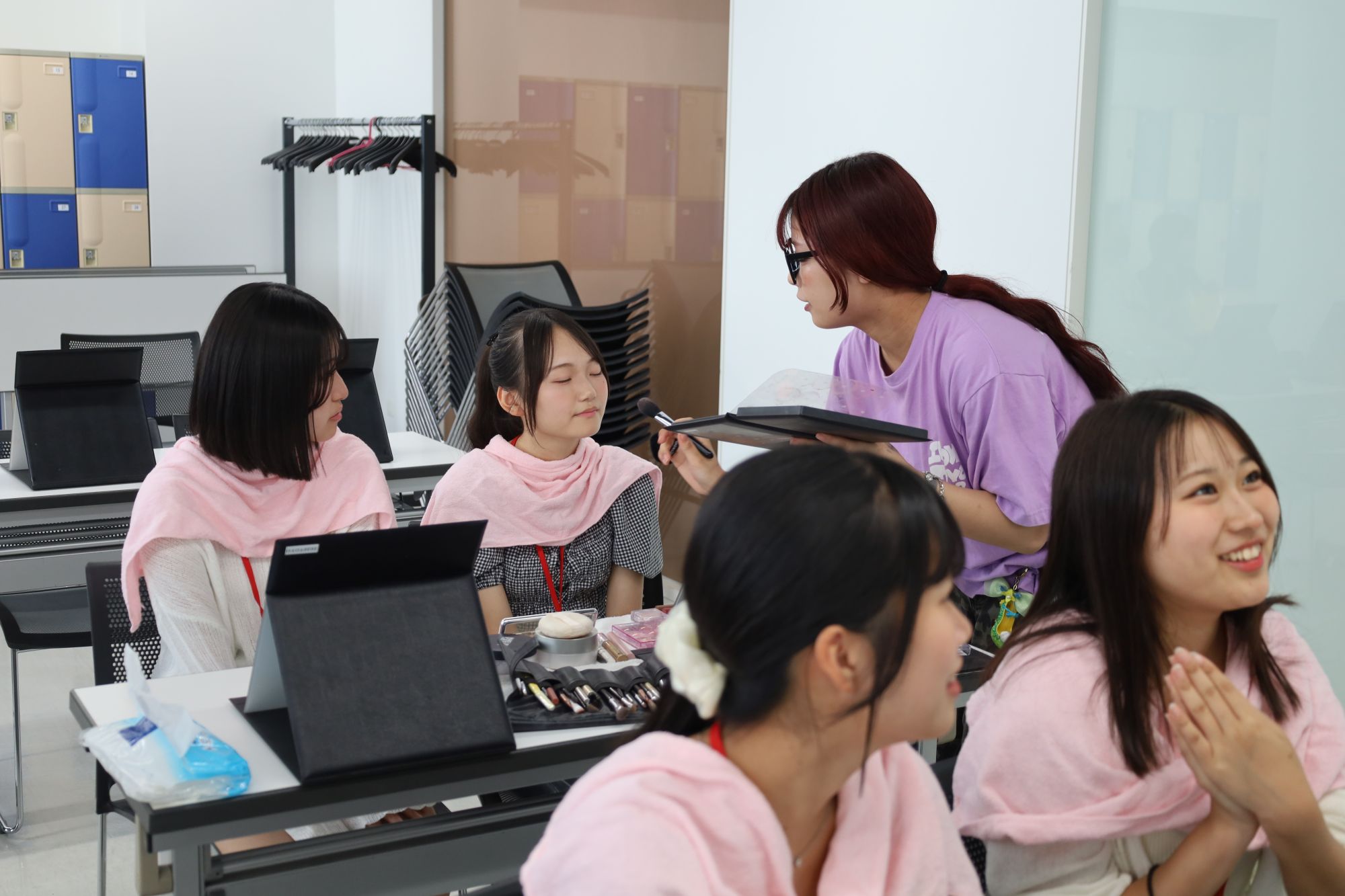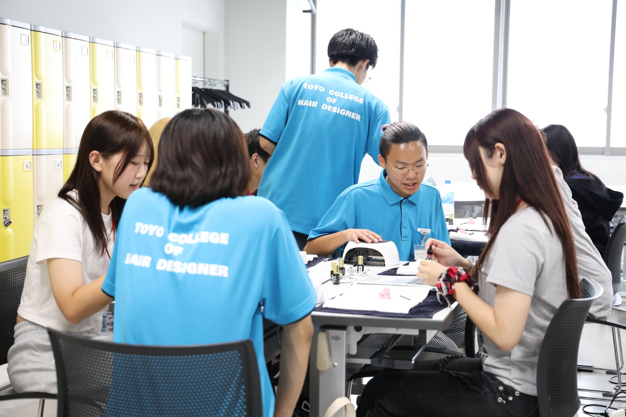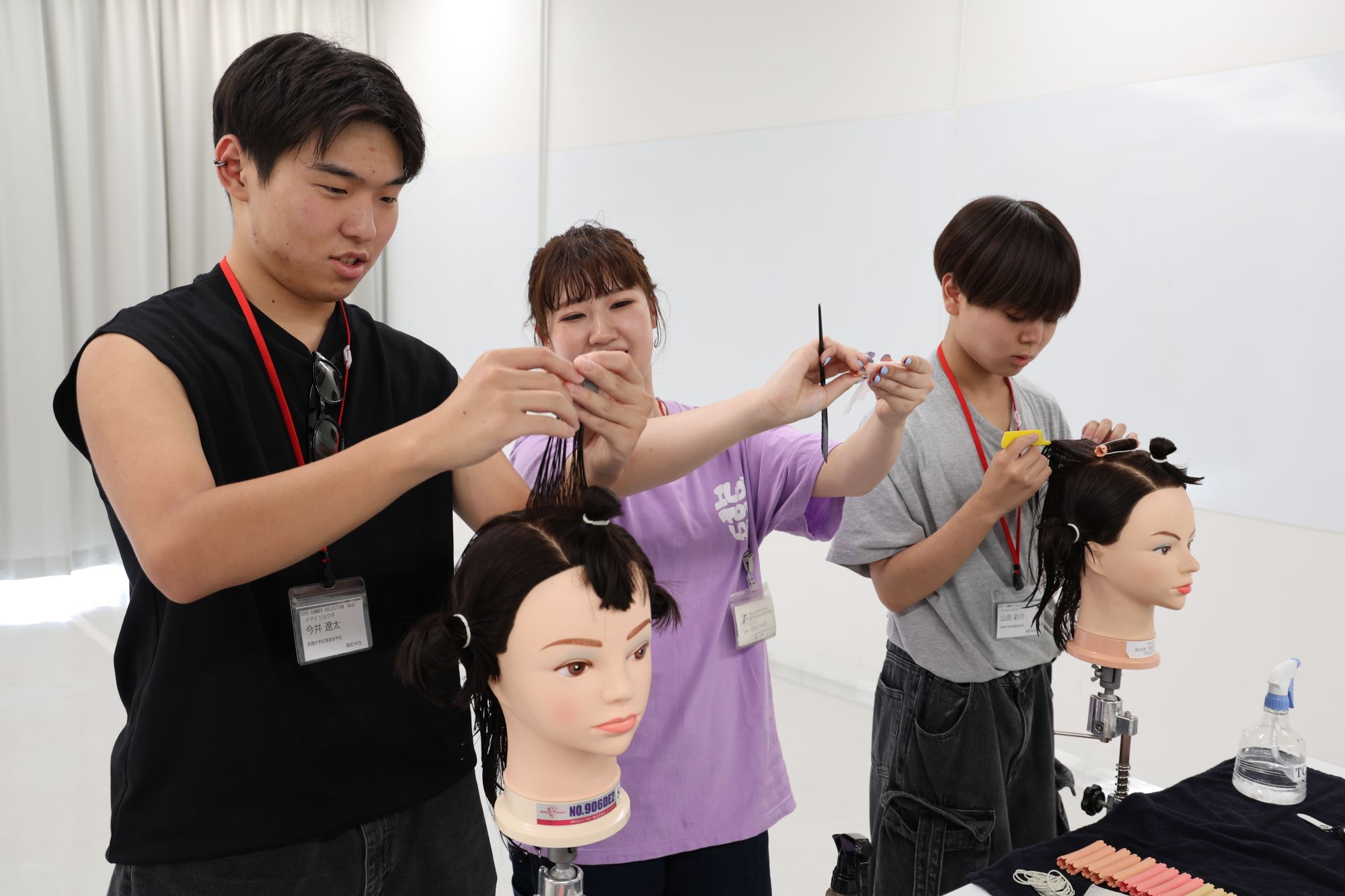 今回は、サスーンカット、フェードカット、ワインディング、メイク、ジェルネイル、まつエクの技術を在校生と一緒に体験していただきました♪